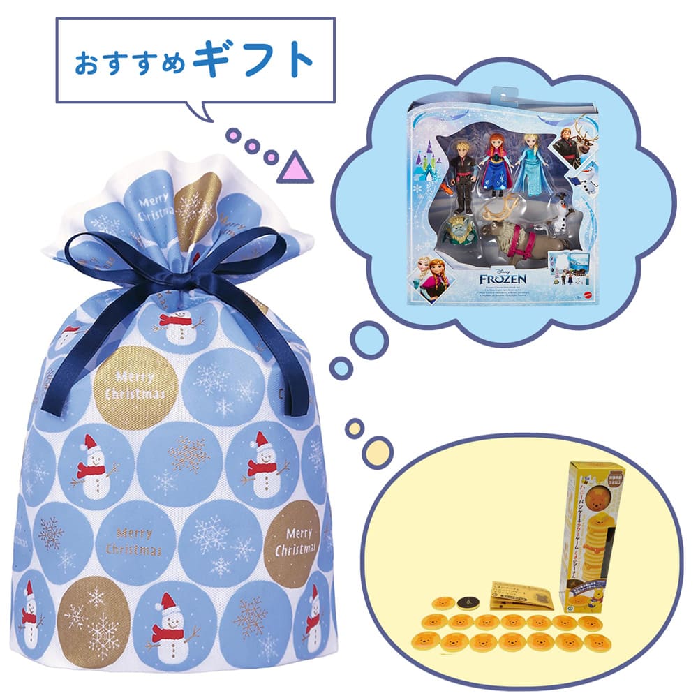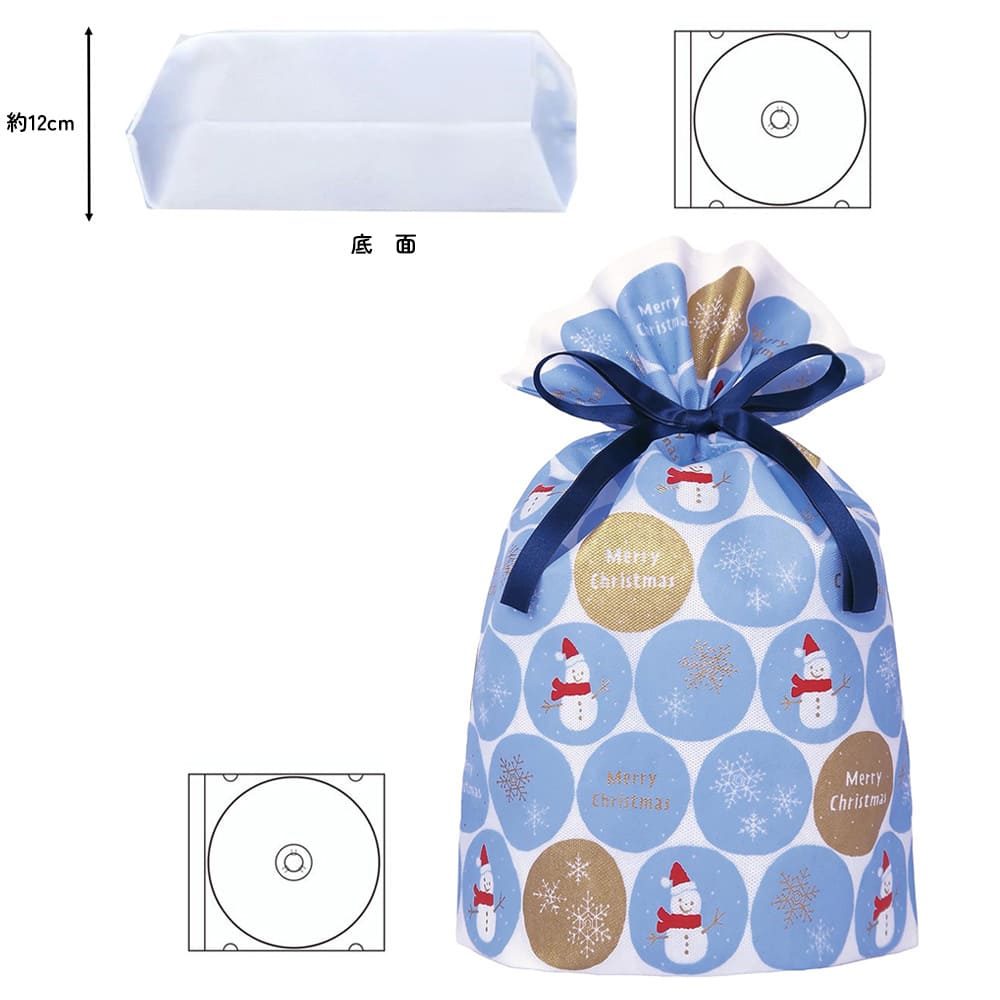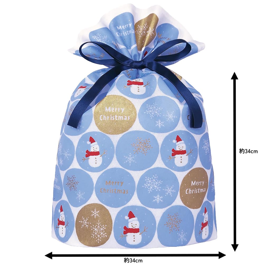 クリスマス ラッピング袋 不織布 スノーボール/ライトブルーL