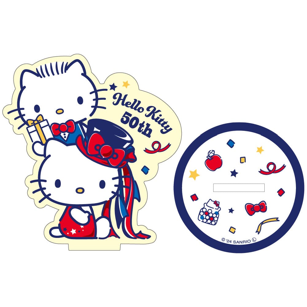 ハローキティ50周年を記念したアクリルスタンドです。