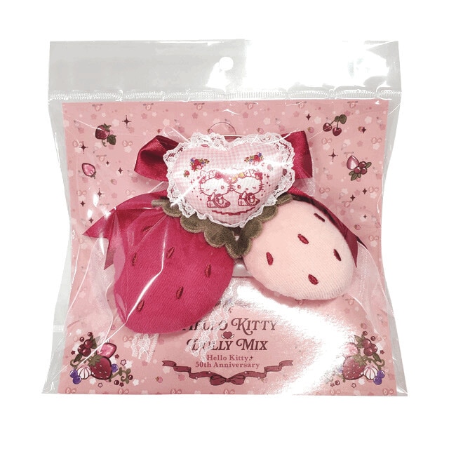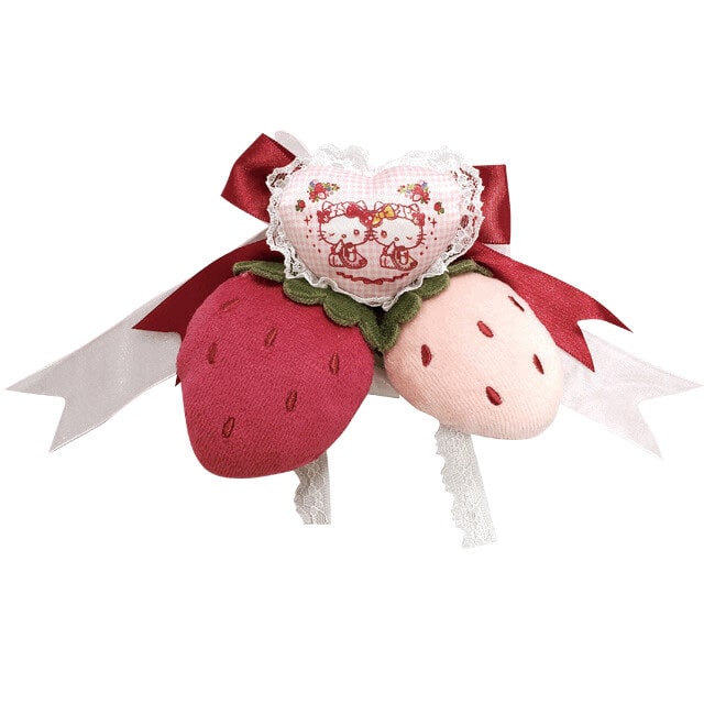キティとミミィのハートのマスコットがついた、いちごのマスコットやリボンがふんだんにあしらわれたブローチです♪