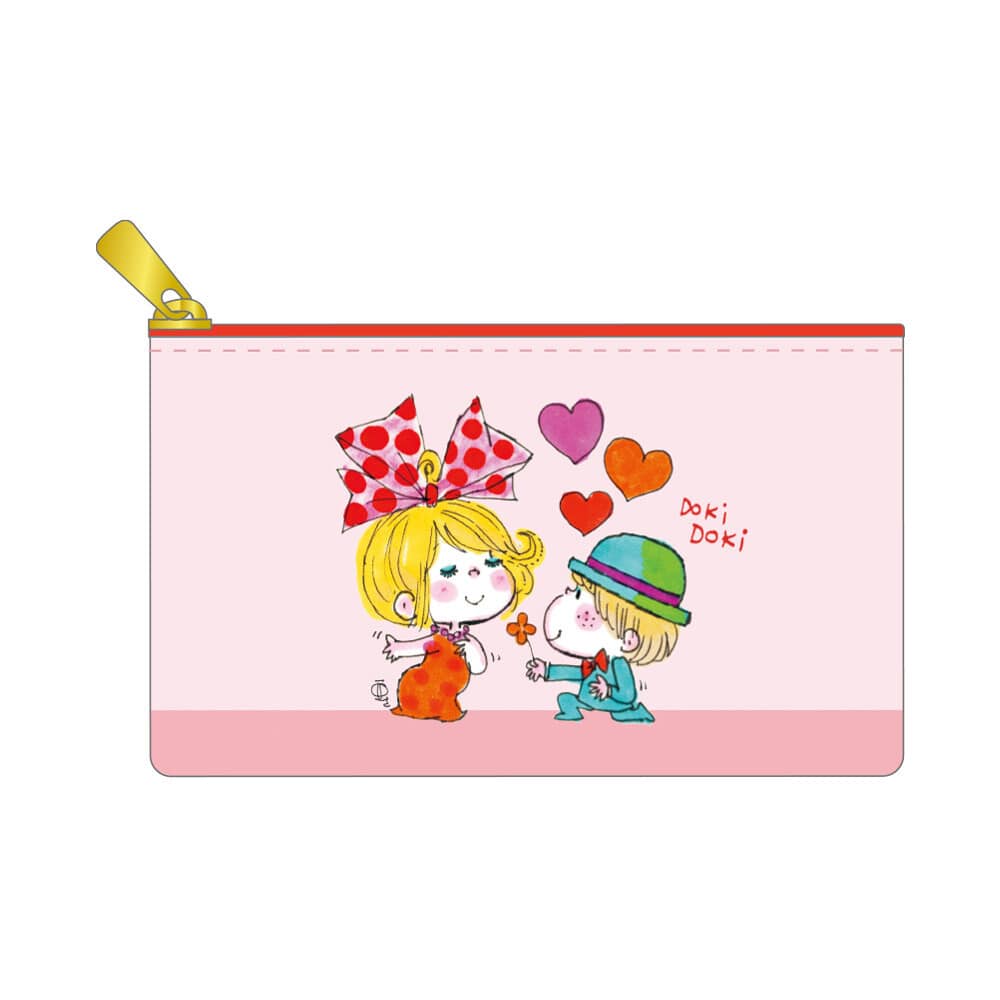 日本の「カワイイ」文化の先駆けとして多くの人に愛され続けるアーティスト、水森亜土の世界観が表現された可愛いデザインのポーチです。