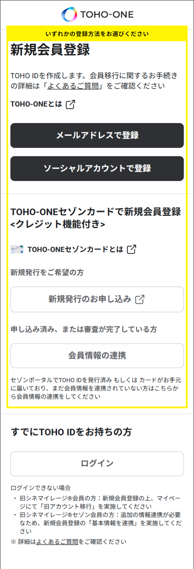 3月3日以降に、①TOHO-ONEへの新規会員登録、②TOHO-ONE会員情報とTOHO entertainment ONLINE会員情報の紐づけ(移行手続き)が必要となります。